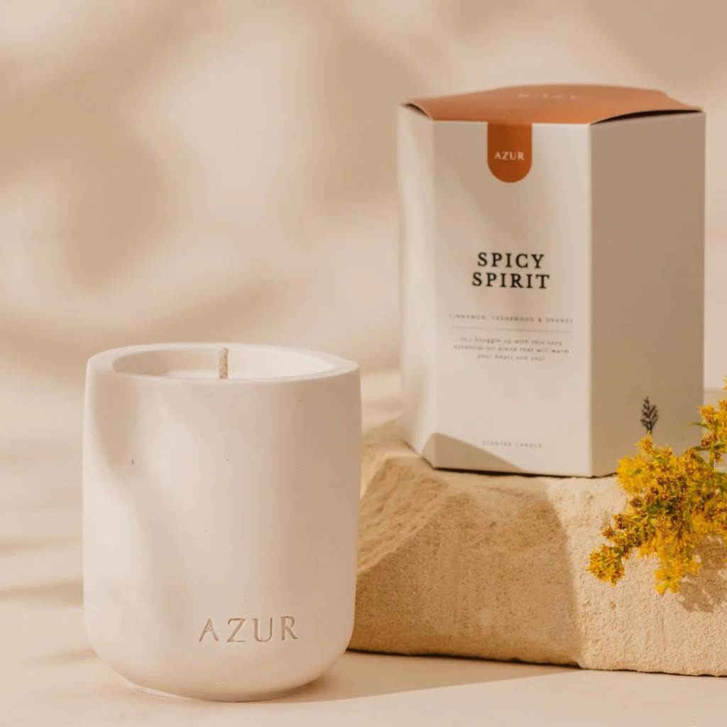 De kaars komt in een mooie, duurzame verpakking, perfect passend bij onze Spicy Spirit body bar.