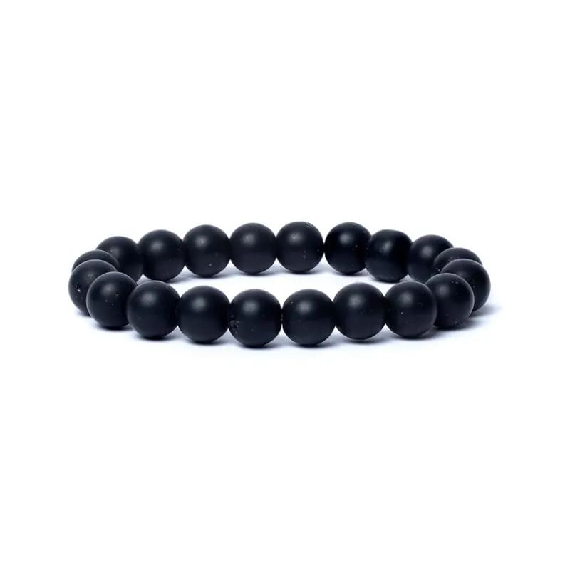Elastische armband gemaakt van AA kwaliteit zwarte onyx kralen met een matte afwerking. Diameter kraaltjes: 1 cm.