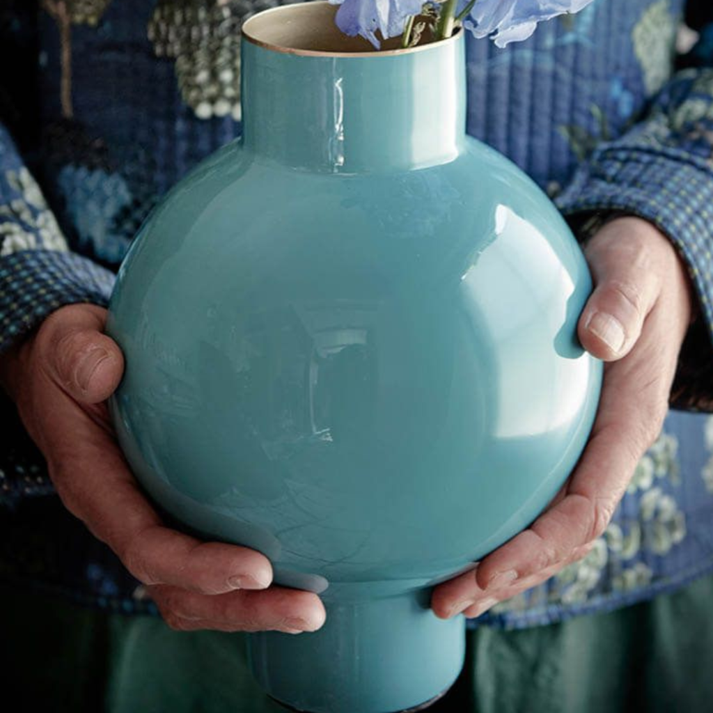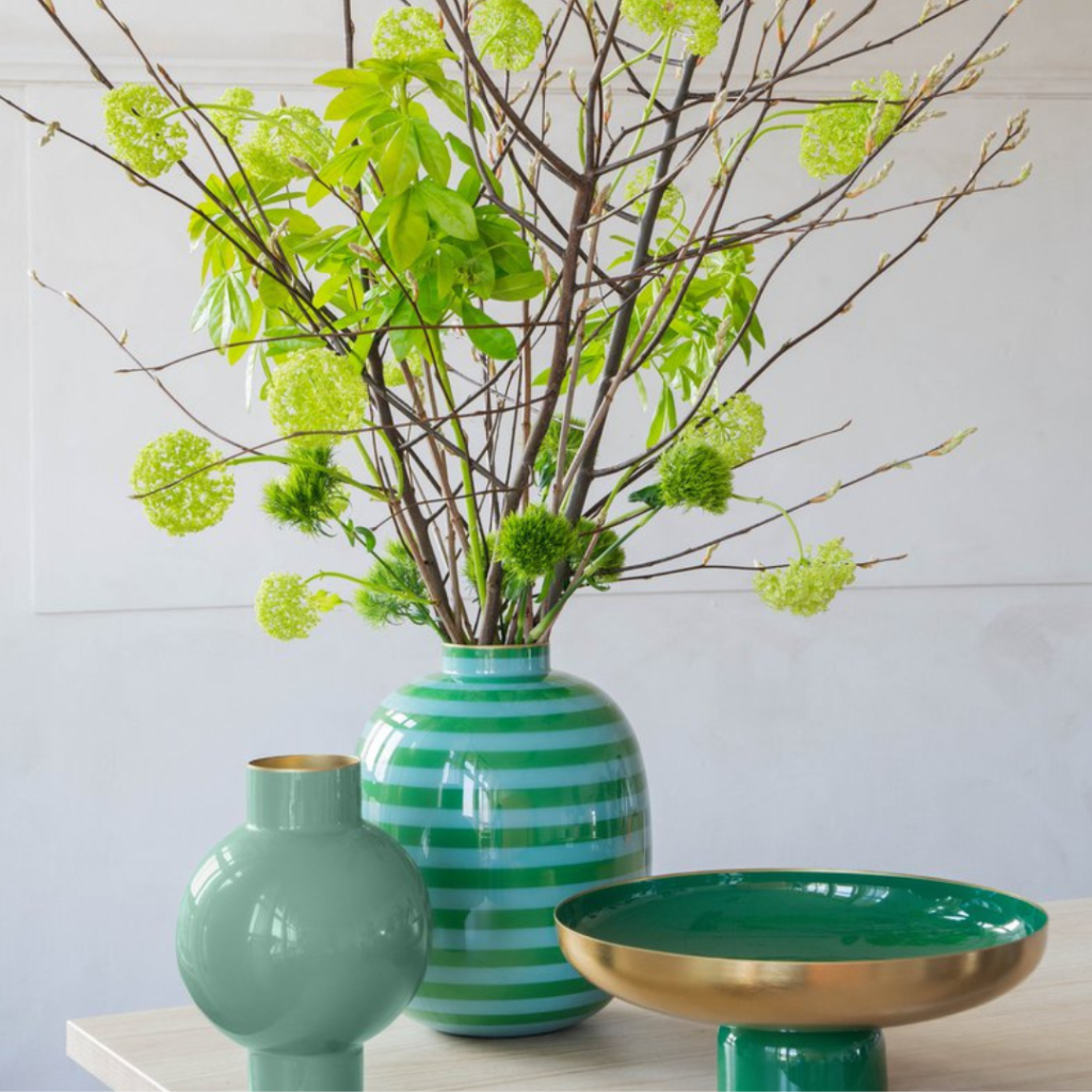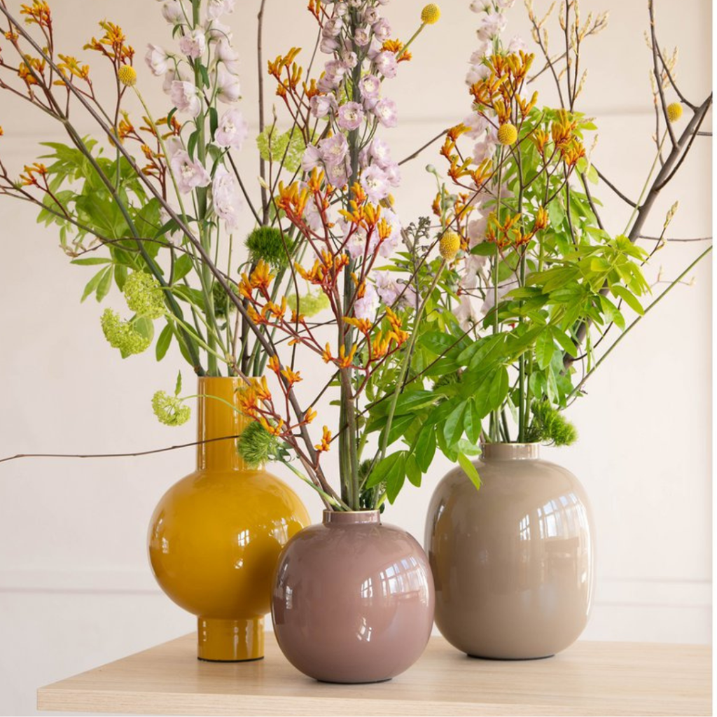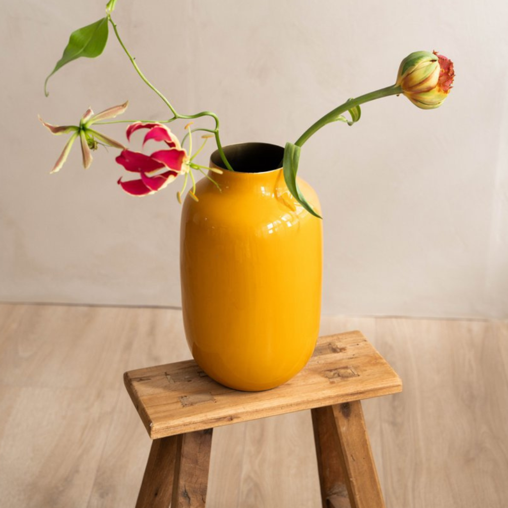 In deze gele ovale metalen vaas uit de Blushing Birds collectie komen je bloemen extra mooi uit.