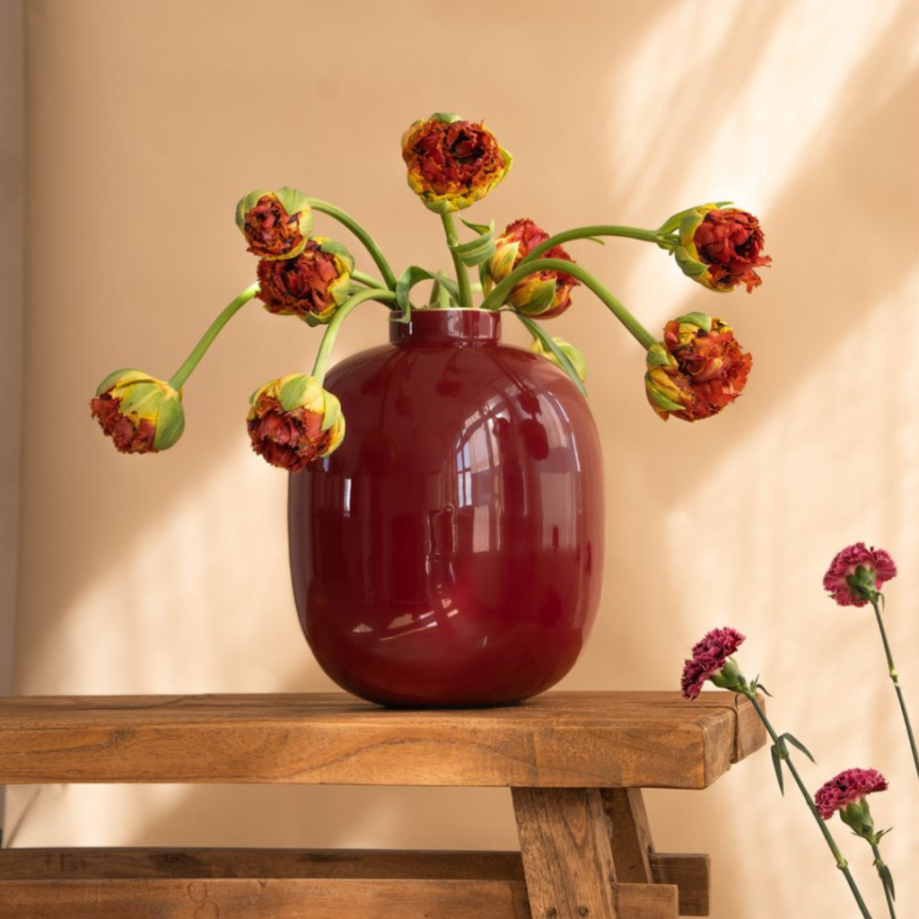 Geef je huis een kleurtje met deze donker rode metalen vaas. Deze vaas laat elk boeket bloemen er prachtig uitzien.
