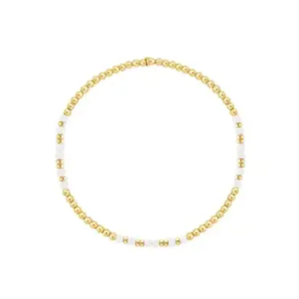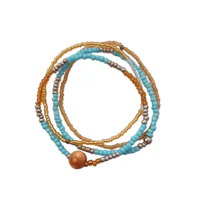 Leuke armband uit de Bohemian Beach Collectie. In deze collectie is gebruik gemaakt van veelal natuurlijke materialen zoals schelp, hout en kokos. De armbanden zijn geregen op dik doorzichtig elastisch elastiek en kunnen zo voor een polsmaat variërend tussen 16 cm en 21 cm. Leuk om te combineren met andere armbanden uit de Bohemian Beach Collectie.