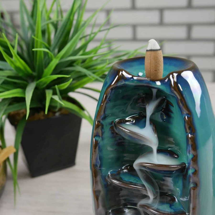 Backflow Wierook Houder Waterval Blauw Keramiek (20 cm)