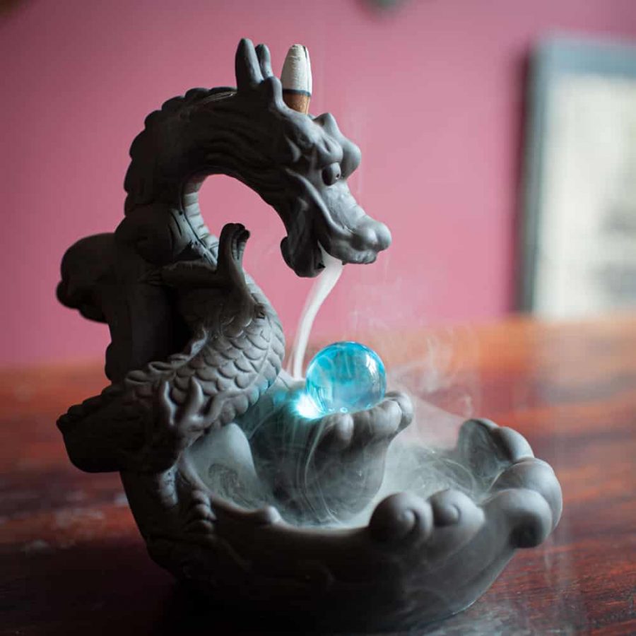 Let op: voor deze backflow wierookbrander heb je speciale backflow kegeltjes nodig. Daarnaast verschillen de branders wat van elkaar qua vorm en kleurtinten Een prachtige en unieke Backflow Wierook brander in de vorm van een draak. Door de unieke vormgeving is deze brander een lust voor het oog. Naast de ontspannende effecten van de wierook heb je dus ook iets om naar te kijken. Het duurt even voordat de backflow kegeltjes goed branden en de rook zich naar beneden beweegt.