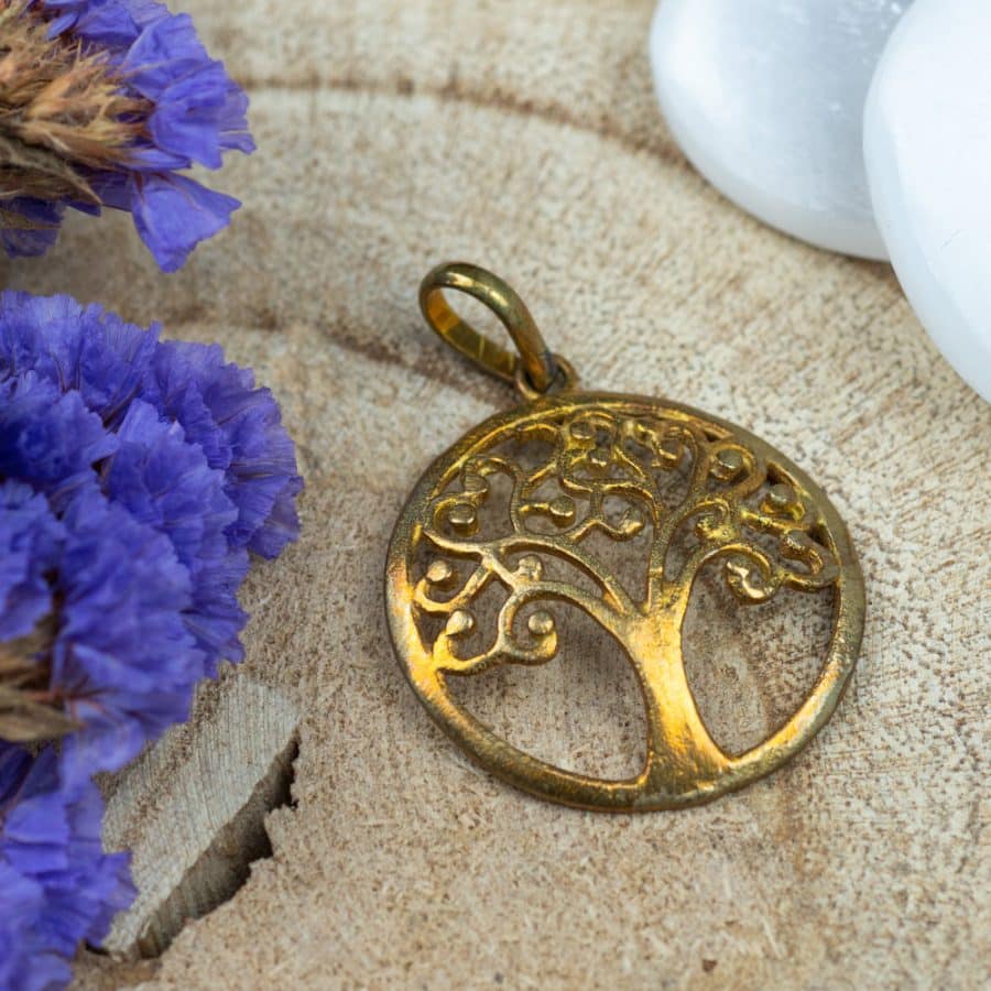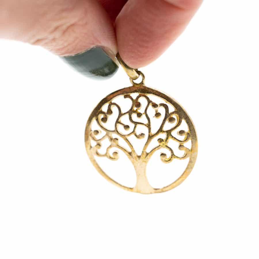 Goudkleurige hanger met het tree of life symbool gemaakt van Messing. De Levensboom is een universeel symbool dat wordt gebruikt in ontzettend veel spirituele en mythologische tradities over de hele wereld. In verschillende culturen is het bekend als de Kosmische Boom, the World Tree, de Heilige Boom en de Tree of Life. De levensboom staat symbool voor wijsheid, bescherming, kracht, overvloed, schoonheid, en verlossing. Ook is de levensboom natuurlijk een symbool voor het leven zelf. Met zijn wortels in de aarde heeft hij contact met de onderwereld. Met zijn takken reikt hij naar de hemel. Hij is een bemiddelaar tussen goden en mensen. De drie belangrijkste systemen van de bomen: de wortels, de stam en de takken staan parallel aan de menselijke ontwikkeling van lichaam, psyche en geest. Het is een krachtig symbool van de groei. Verder symboliseert de levensboom het eeuwige leven en onsterfelijkheid.