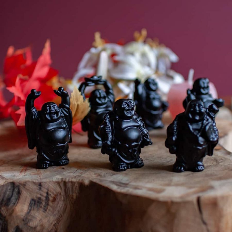 Happy Boeddha Beeld Staand Polyresin Zwart | set van 6 | ca. 7 cm