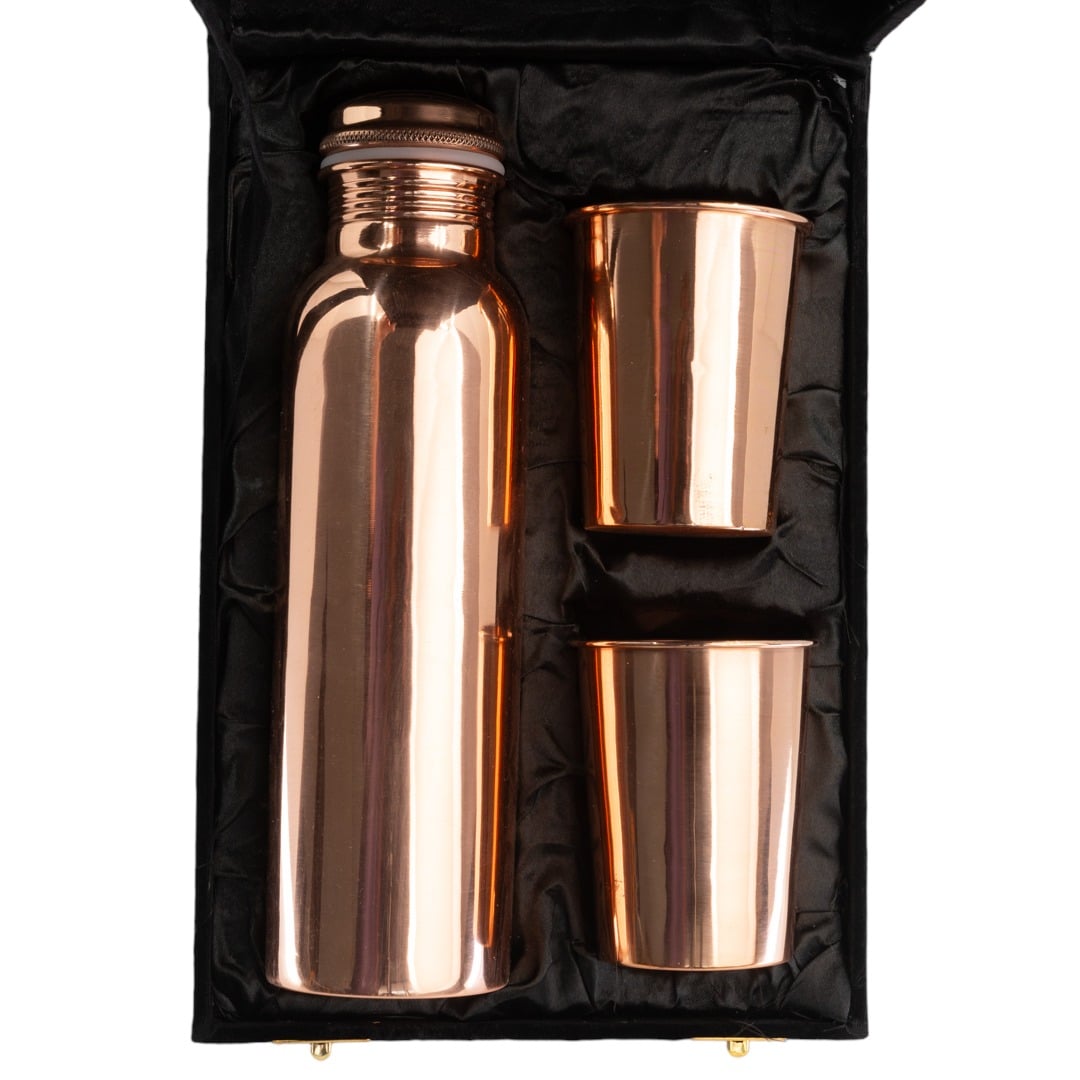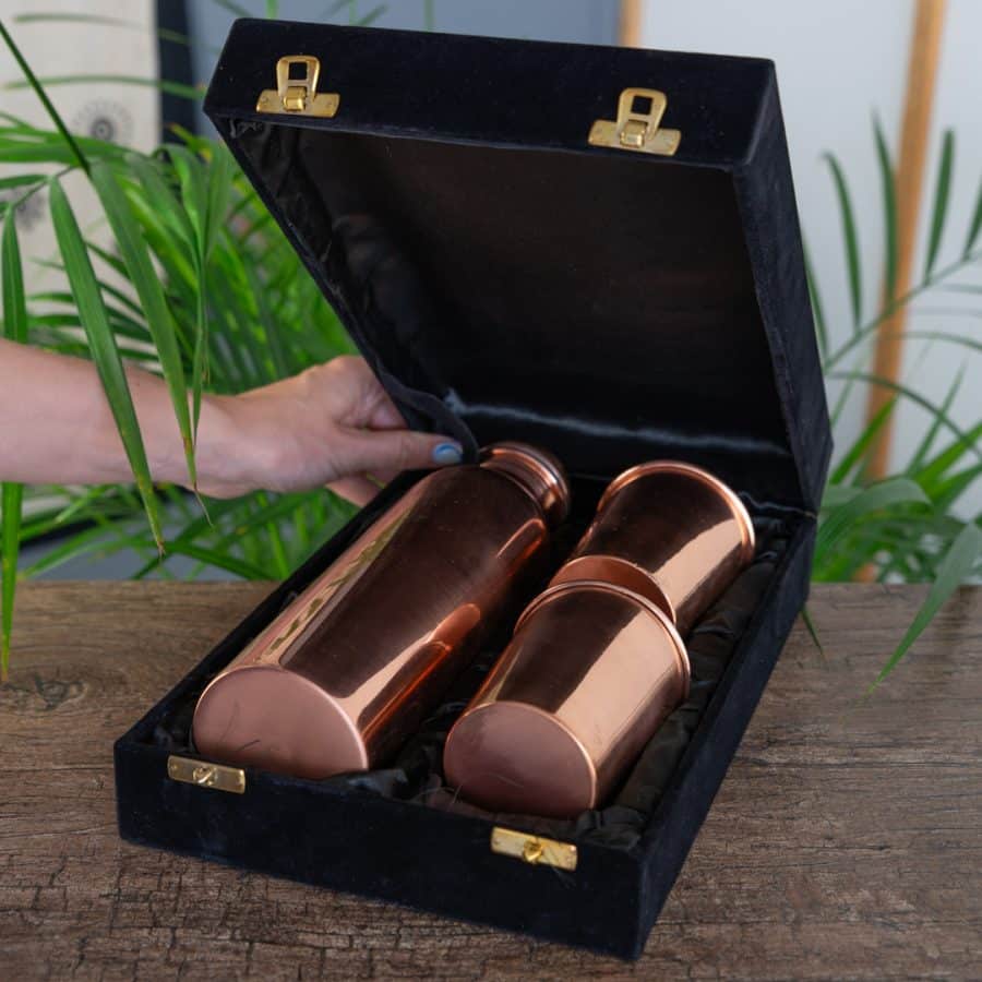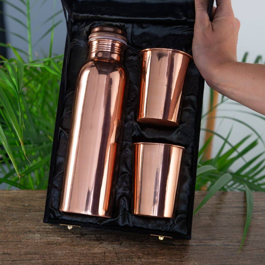 De Koperen Waterfles & Bekers – Cadeau Set is een prachtige set die bestaat uit twee bekers van 250 ml en een fles van 900 ml, allemaal vervaardigd van hoogwaardig koper. Deze set is niet alleen functioneel, maar ook een geweldig cadeau-idee voor iedereen die belang hecht aan gezondheid en welzijn.