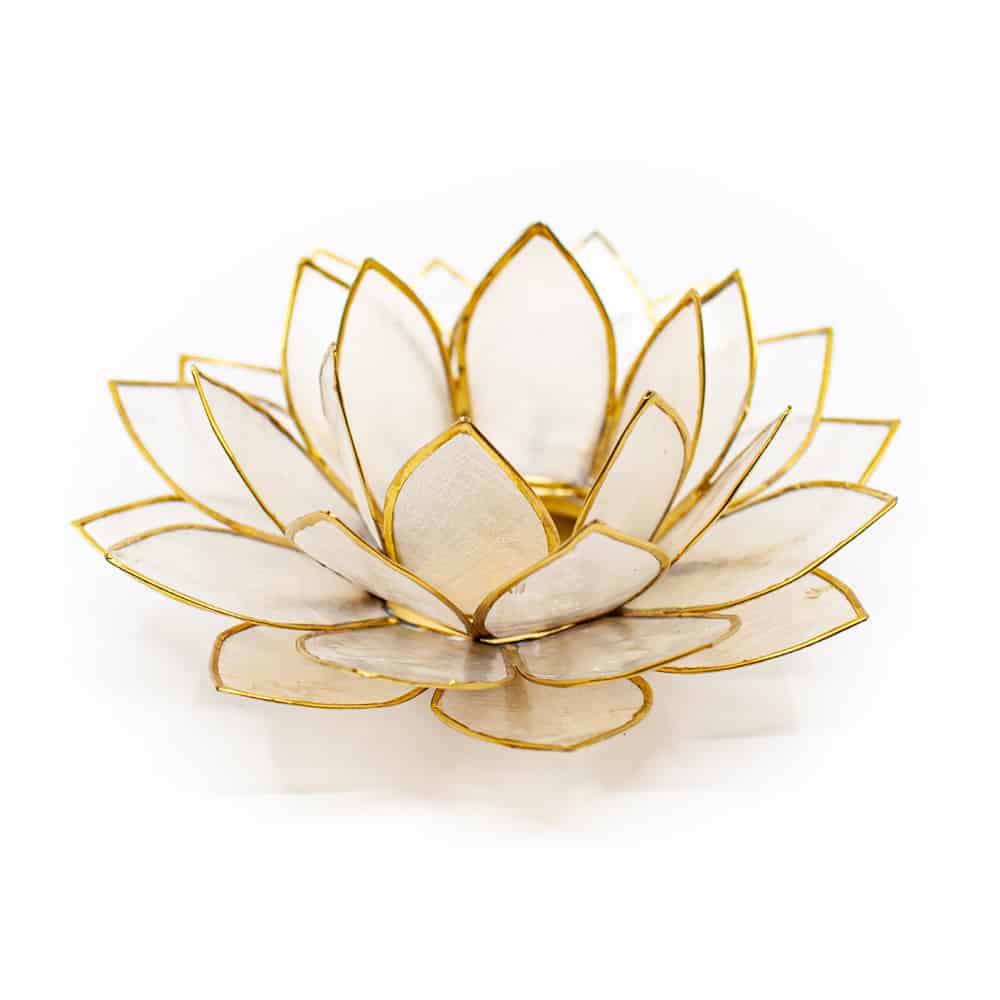 Elke lotus is uniek en wordt met de hand vervaardigd, met zorg afgewerkt met een verfijnde gouden rand. Kleine imperfecties zijn eigen aan het natuurlijke materiaal – en maken jouw sfeerlicht alleen maar karaktervoller.