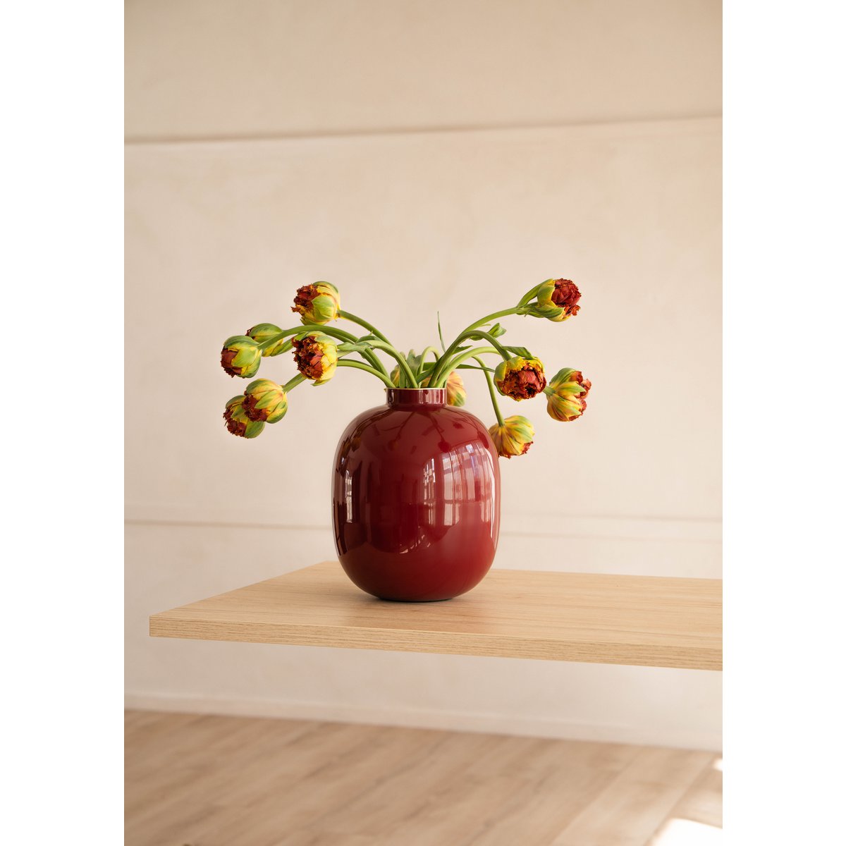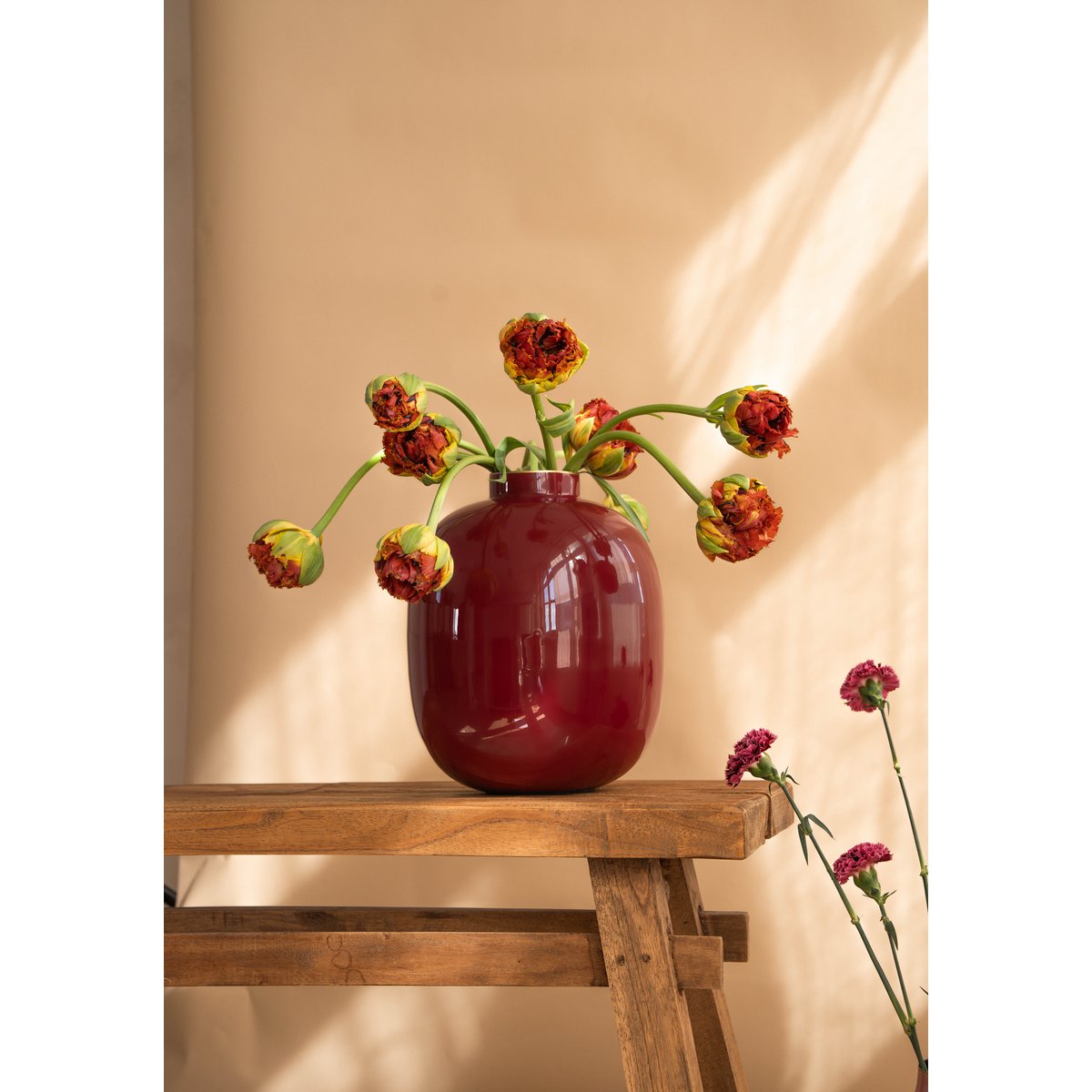 Het strakke en stijlvolle ontwerp van onze metalen vaas voegt een vleugje verfijning toe aan elke kamer, of het nu op een schoorsteenmantel, bijzettafel of als middelpunt op uw eettafel wordt getoond. De veelzijdigheid ervan maakt het mogelijk om naadloos te mengen met verschillende decoratiestijlen, van modern en minimalistisch tot eclectisch en bohemien.