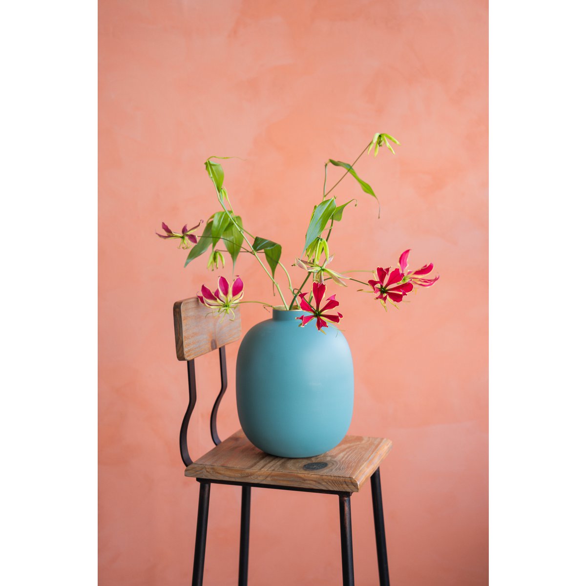 Gemaakt in India met extra aandacht voor detail, wordt elke vaas liefdevol met de hand gemaakt, wat zorgt voor een uniek en onderscheidend stuk voor uw leefruimte.