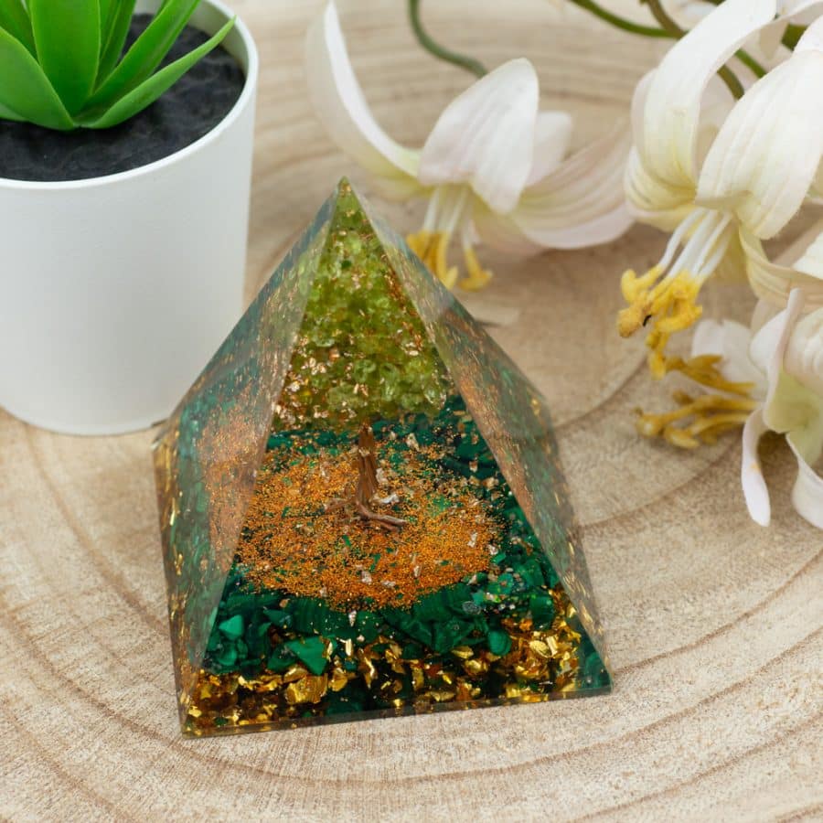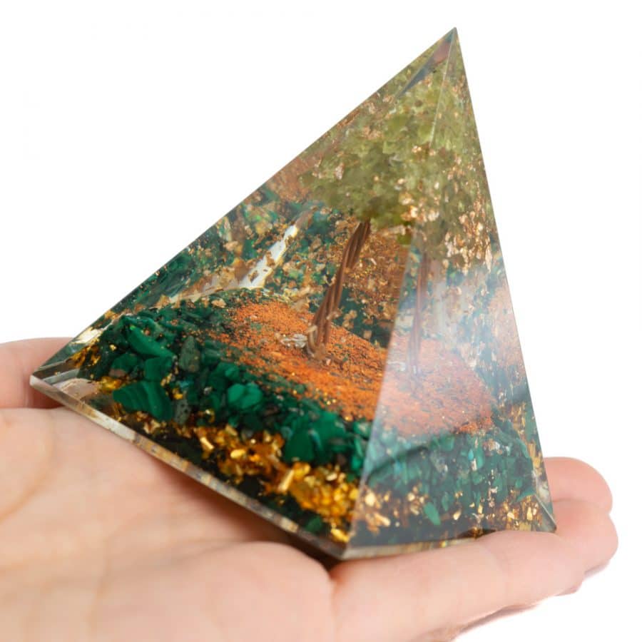 Orgonite Piramide Malachiet & Peridoot Edelsteen Boompje (80 mm)