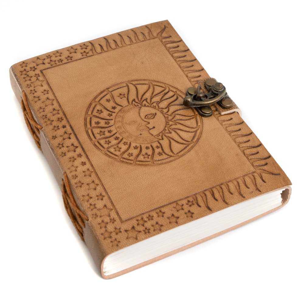 BEKIJK PRODUCTSpiritueel Notitieboekje Leer met Zon/Maan (17,5 x 13 cm) | Handgemaakt