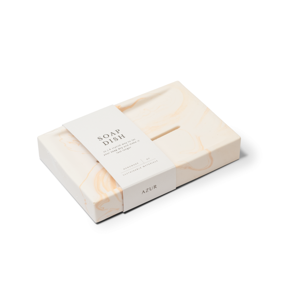 Handgemaakt zeepschaaltje : stijlvol, praktisch en milieuvriendelijk. Handgemaakt in ons eigen atelier van duurzaam Jesmonite materiaal, gemaakt van agrarisch afval. Dit schaaltje is het zowel luxueus als duurzaam.