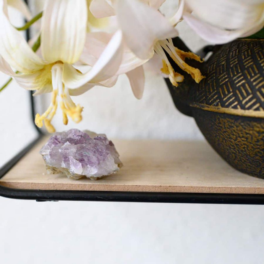 Let op: doordat het een natuurproduct is, is elke amethist uniek. Je krijgt dus altijd wat anders. Amethist is een purperkleurig kwartskristal. Kleuren variëren van licht lavendel tot diep violet. Amethist kristallen bezitten spirituele eigenschappen en ze kunnen worden gebruikt ter ondersteuning van het verhogen van je bewustzijnsniveau. Ze vormen een brug tussen aardse en etherische werelden, waardoor er een opening komt naar spiritueel bewustzijn. Onderhoud: reinig onder stromend water, laad weer op gedurende de nacht, in een schaal met getrommelde hematiet stenen. Amethist houdt niet van blootstelling aan direct zonlicht. Geschikt voor o.a. gebruik bij healings, als decoratie en op altaren. De formaten van deze Amethist clusters zijn 2 ~ 4 cm. Bovenstaande informatie is niet wetenschappelijk bewezen, het is gebaseerd op ervaringen van gebruikers van edelstenen en therapeuten.