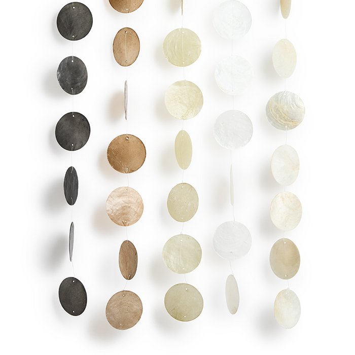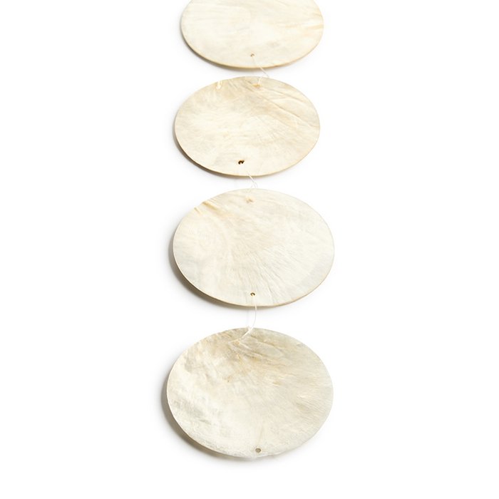 Capiz schelpen staan bekend om hun transparantie en natuurlijke glans. In deze Warm Gold uitvoering krijgt het materiaal een extra warme uitstraling zonder zijn natuurlijke karakter te verliezen. Elke slinger wordt met de hand samengesteld, waardoor kleine verschillen in tint en vorm vanzelfsprekend zijn.