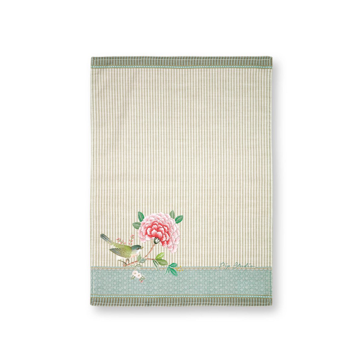 Het design van de Blushing Birds collectie is geïnspireerd op de landschappen en het vakmanschap uit verschillende werelden, waarbij invloeden van verschillende culturen samenkomen en zorgen voor spannende nieuwe contrasten. Tropische vogels en exotische bloemen zijn gecombineerd met de klassieke Pip Studio details en dit geeft de theedoek een bijzondere uitstraling.