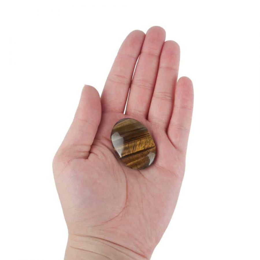 Een unieke zaksteen in een handig formaat gemaakt van de edelsteen Tijgeroog. Deze steen varieert in grootte en is gemiddeld 3 cm.