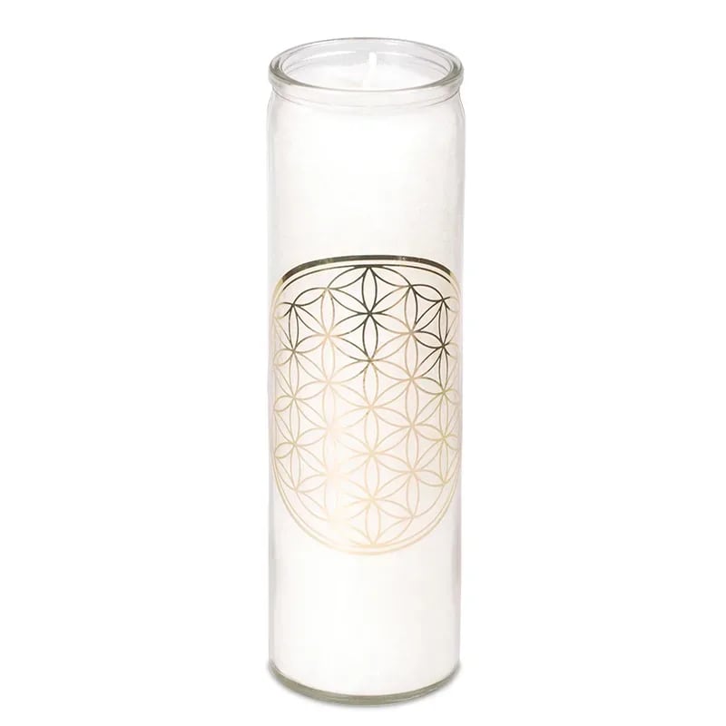 Geurkaars stearine Bloem des Levens wit | 21×6.5 cm