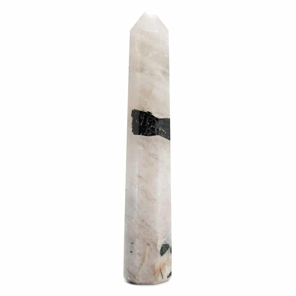 Een 8-zijdige obelisk van de edelsteen Toermalijnkwarts. Elke steen is uniek in vorm, kleur en bevat oneffenheden, het is een natuurproduct. Ze zijn niet 100% egaal. Dit past goed bij het authentieke karakter. Toermalijnkwarts bestaat uit zwarte toermalijn en bergkristal en verenigt de eigenschappen van deze twee edelstenen. Het is een aardende, beschermende en reinigende steen. De steen zou negatieve energie omzetten in positieve energie. Je aura zou worden gereinigd, waardoor chakra’s, je emoties en je lichaam in balans worden gebracht. Toermalijnkwarts zou je daardoor kunnen helpen om een zelfverzekerde en ontspannen houding aan te nemen en je in je kracht te voelen.